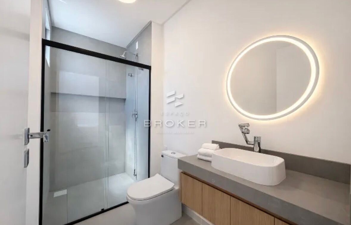 Todos os móveis e eletrodomésticos são novos e nunca utilizados, incluindo camas com baú nas suítes, armários planejados, geladeira, máquina lava e seca, aquecedor a gás 32 litros com Wi-Fi e TV QLED 85” na sala. Projeto completo dos armários da cozinha já pago, com instalação prevista.